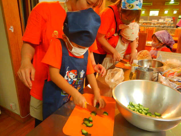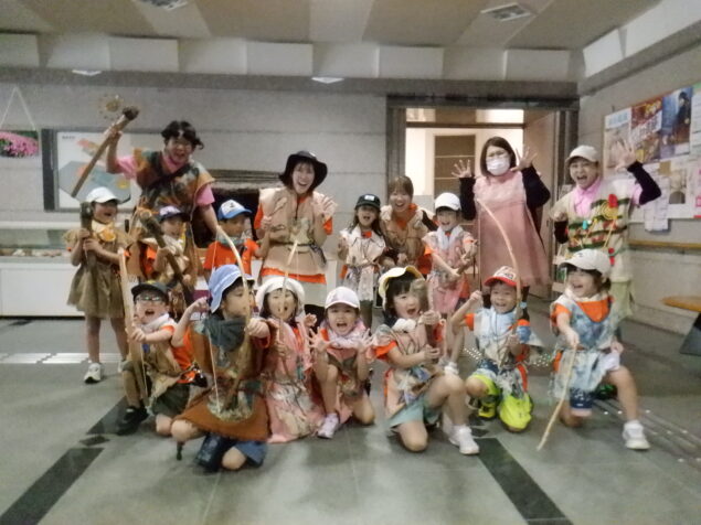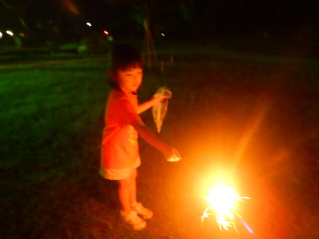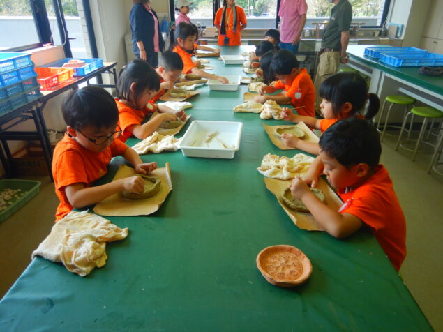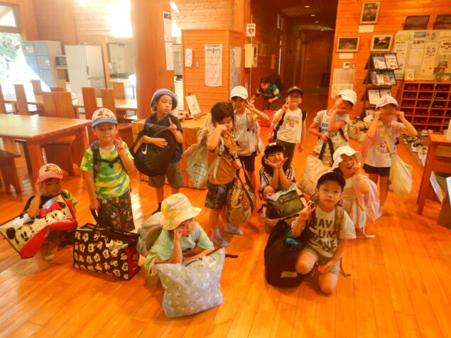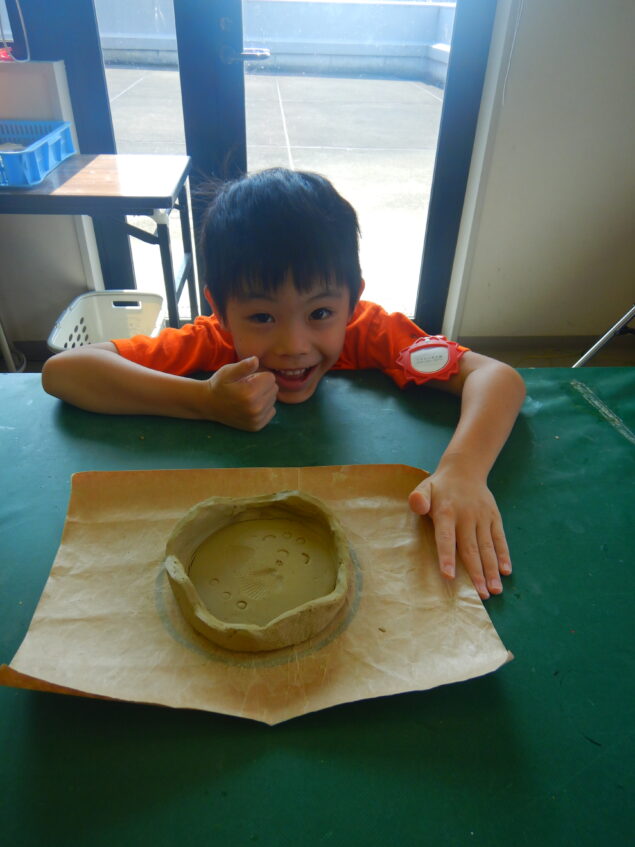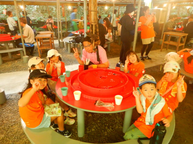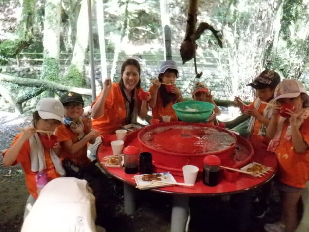 天気に恵まれ、考古歴史館ではお皿づくりに挑戦!貝殻や竹串を使って嬉しそうに模様を付けていましたよ!古代服体験も行い、昔の人になりきった子どもたちでした♪その後は楽しみにしていたそうめん流しへ!「おいしい~」「さいこう~」という声がたくさん聞かれました😊谷山神社でお参りをしててんがら館へ向かいました。てんがら館では、タイヨーで買っていたおやつをみんなで食べて、カレー作りをしました。みんなで協力してとってもおいしく出来上がりました!その後、手持ち花火をしてお風呂に入り夜はぐっすり眠っていた子どもたちでした。