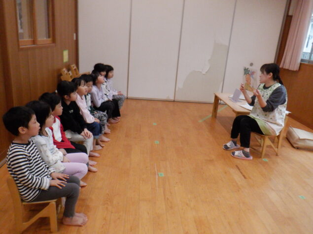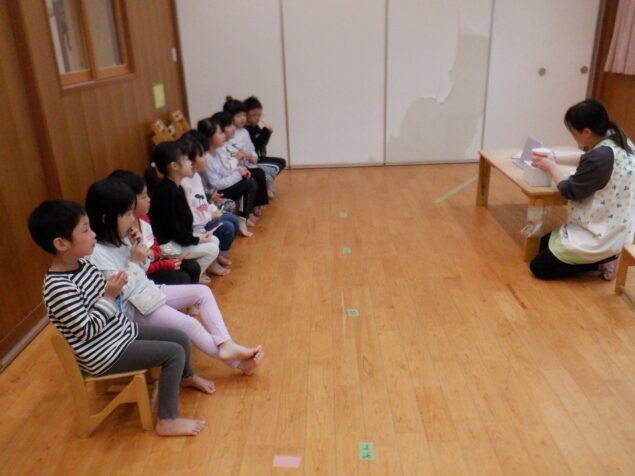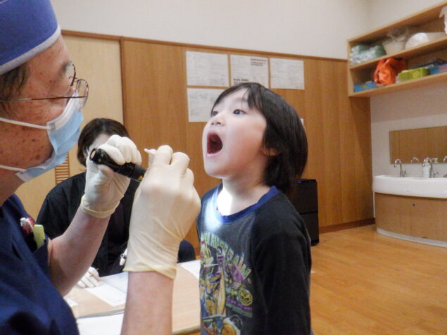 うみグループ(0・1・2歳児)の子どもたちは、歯医者さんに会うとドキドキして涙を見せる子もいましたが、保育士と一緒に口を開けて診てもらうことができました!そらグループ(3・4・5歳児)の子どもたちは、自ら大きな口を開けて診てもらうことができました!