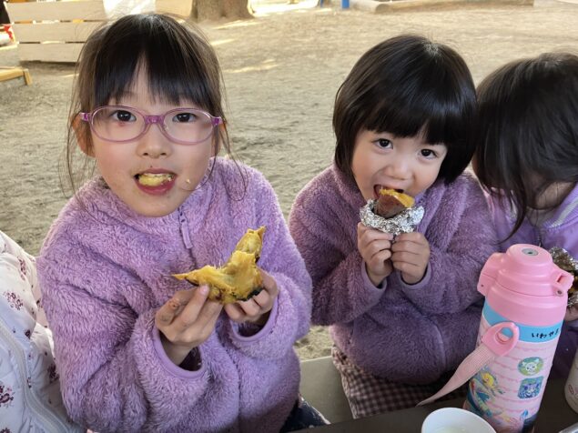 午後のおやつは焚火で焼き芋を作りました☆温かく甘い安納芋を食べて、心も体もぽかぽかになった子どもたちでした♡