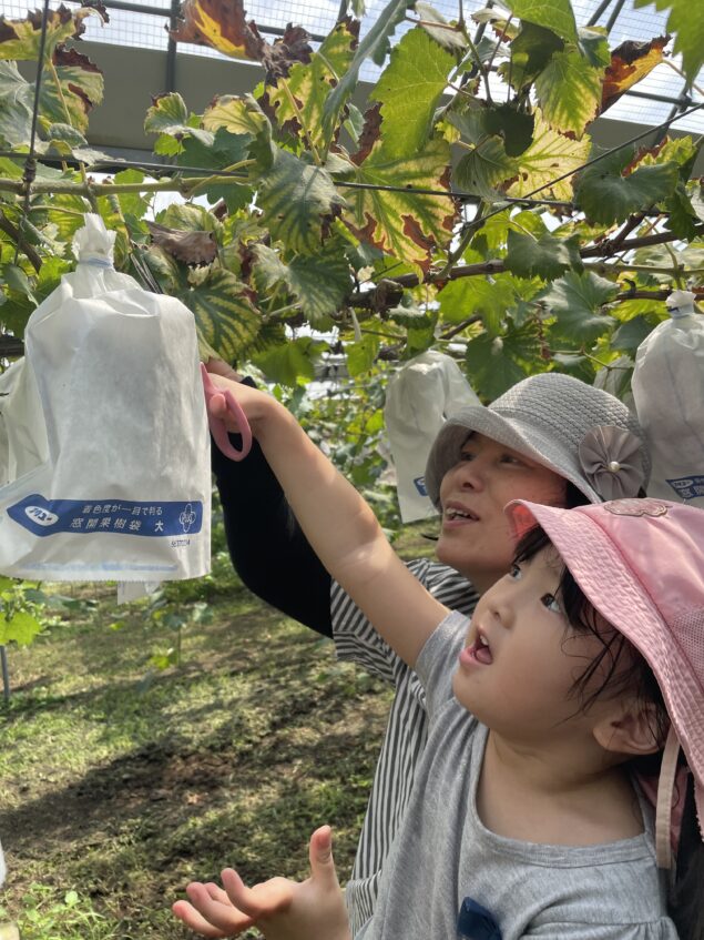8月27日(水)に姶良市の加治木町にあるはぎいわ農園さんで果物狩り遠足がありました🍇今回は、うさぎ組の親子遠足ということで、保護者の方も一緒にぶどう狩りの体験をしましたよ!